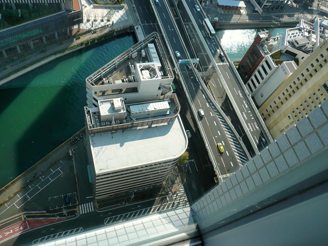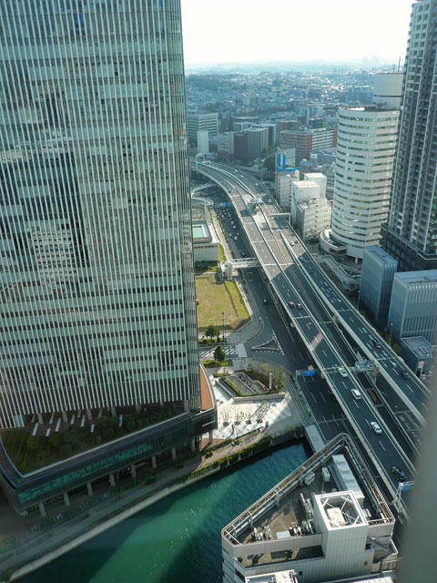 ビルの谷間を走る高速道路。 渋滞もなく車もスムーズに走っているようです。 |