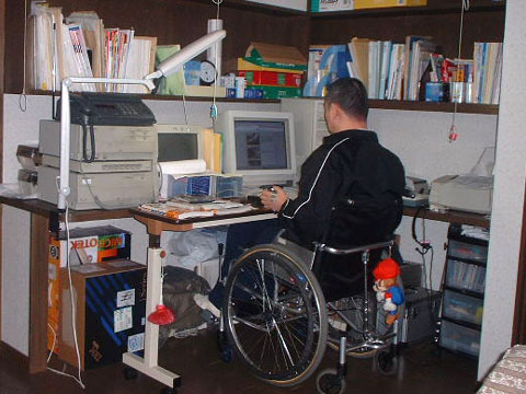 高さは室内用車いすに合わせてセットしてあります。奥行きが狭いのが難点です。手前にベッド用のオーバーテーブルを置いて使用しています。