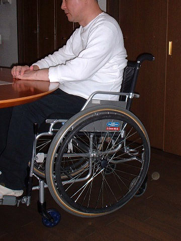 天板のなるべく薄い物を選び、車いすでも膝がぶつからない高さのものを探して購入しました。