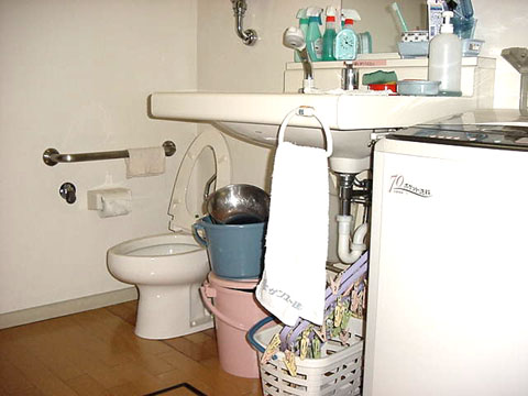 洗面台です。電動車椅子に乗って散髪をしたり、髪を洗ったりします。